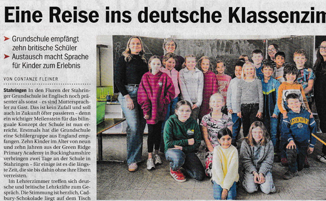 On our second day at Grundschule Stahringen, we had a visit from a journalist from the local newspaper. They were keen to learn more about the partnership between our schools and the experiences our children were having. One of our pupils, Grace, even had the chance to be interviewed and share her thoughts about the exchange—she did a fantastic job representing our school!! The full article can be read (and translated into English) here (Radolfzell: Eine Reise ins deutsche Klassenzimmer | SÜDKURIER)